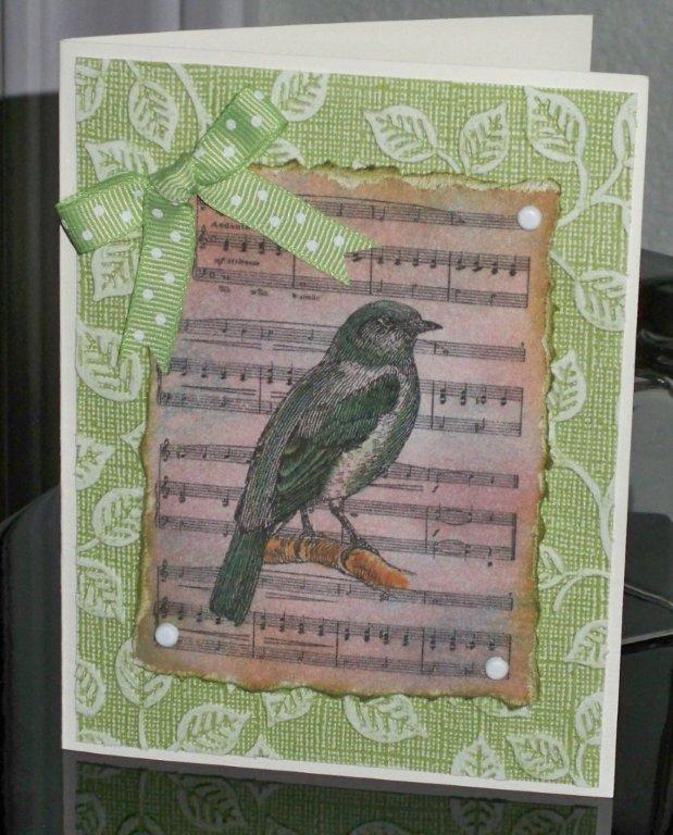 I am behind with keeping up my Gecko Galz samples so I will put both April and May up on here. April is a bird card, since my last name is bird I really like to do bird stuff. Here is my card :